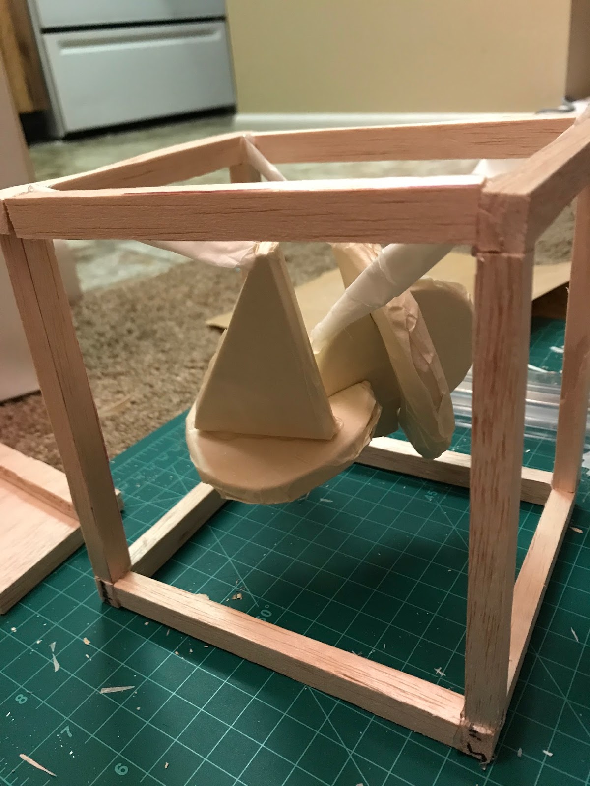Materials: Foam Board, Masking Tape, Black and White Paints, Balsa Wood